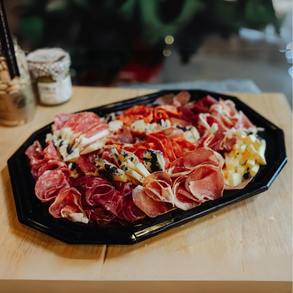 Pe platourile noastre vei găsi bunătăți din Italia, Spania: chorizo iberic, jamon serrano, prosciutto, speck, Grana Padano, Gorgonzolla, pecorino cu trufe, bere sau nucă.